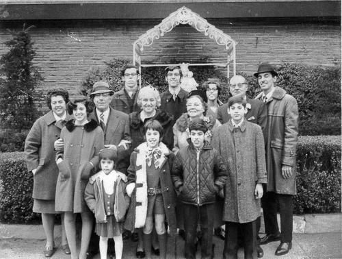 In 1969, when I was eight years old, my grandparents reached their golden wedding anniversaries. I recall three celebrations surrounding the occasion. There was a party for Grandma and Pappap Capone at the Sub Alpine, an Italian Club in Turtle Creek. They had cookies and an open bar where we get pop, dancing, and a bocce court through a door off the dance floor. The party for Grandma and Pappap Morelli was held at the North Bessemer Volunteer Fire Department Hall near their Penn Hills home. The hall was decorated with large signs painted by my brothers Jim and Thom, each with a different pair of names by which they were known: Mr. & Mrs. Morelli, Frank & Tansy, Grandma & Pappap, and Comare & Compare. The third anniversary celebration was a mass at Mother of Good Counsel Church where they were married. My whole family attended the mass, and afterward we posed for a historic family photo with our four grandparents.