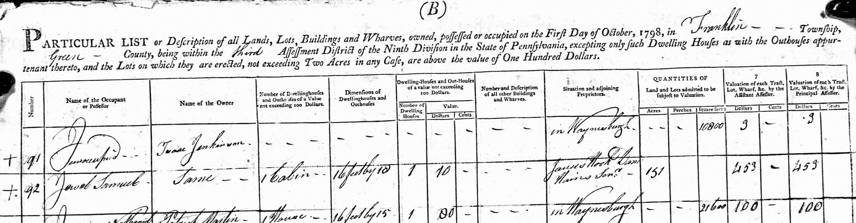| Jewel, Samuel Jun | 17 acres of land | 25 | 1 | 30 | 1 | 8 | wheel wright | 10 | |