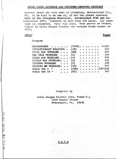 In addition to the cemetery book, Fischer, and other researchers like Rev. Ruff, compiled records from the Brush Creek Churches into valuable resource books for family history buffs. These include various marriages, baptisms and deaths ranging in years from the 1790s into the early 1980s, although the records might not be all inclusive. The German Church Records, translated by Rev. Ruff from the original German baptismal records of Rev. Weber and others, listed the child, parent and any sponsor. Ruff’s books are a valuable resource for those researching the early period of Westmoreland County.