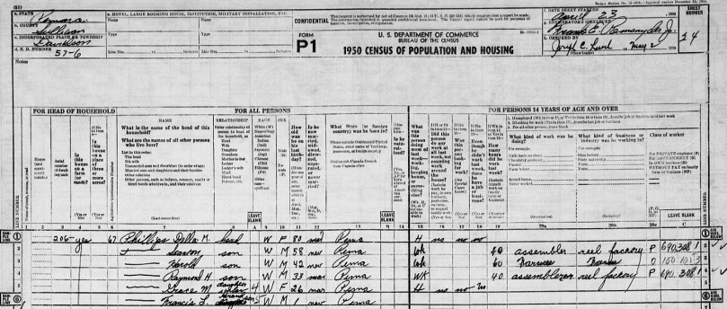 In 1928 Jacob’s father died and Jacob probably inherited his father’s farm, as the Phillips family was surrounded by several of the same families who were nearby from 1920 to 1940. Although the 1930 census listed Jacob as owning a house not on a farm, the 1940 census has him as an owner of a farm. Land records can help clarify whether this was another error in the census or if they indeed lived in different places for those two censuses. In 1930, their son Sherman, who was married with a young daughter, lived beside Jacob and Della; perhaps he rented from his parents, in the same way Jacob rented from his father.