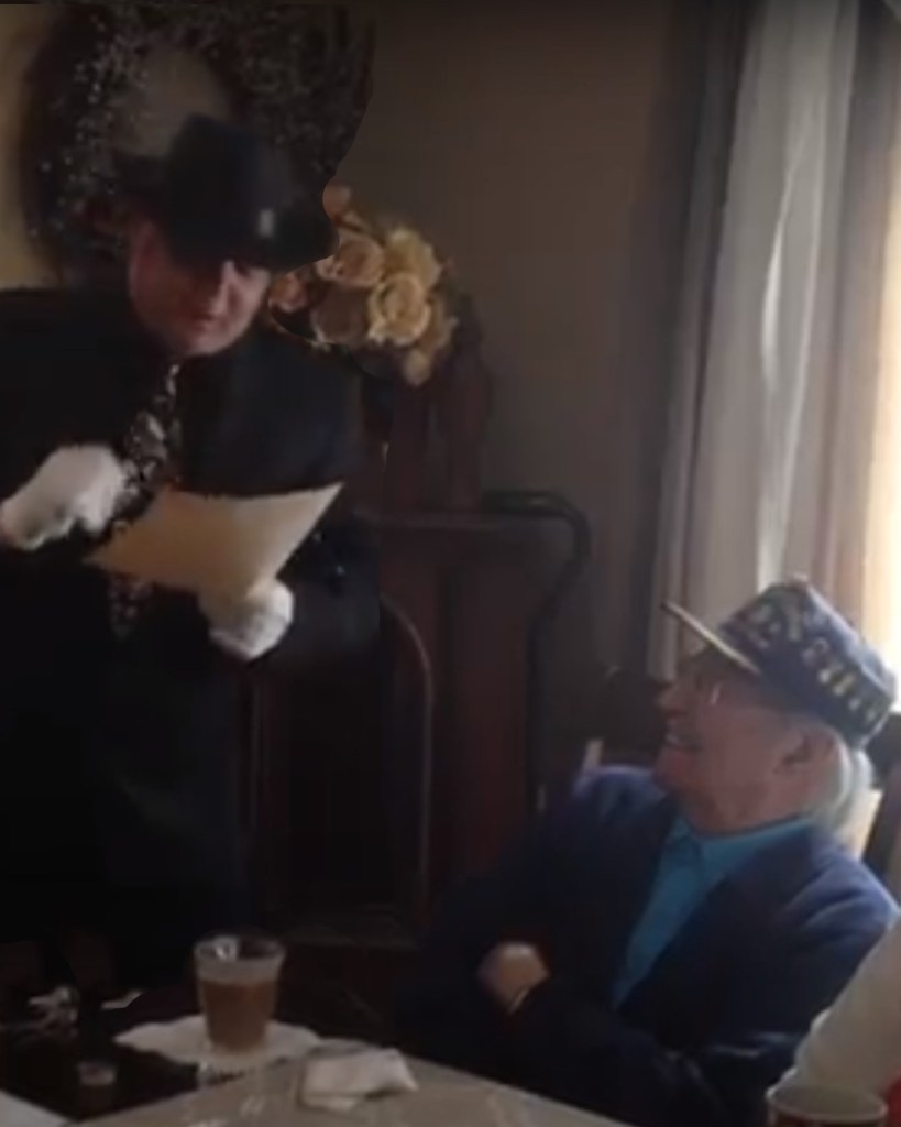 I was standing off to the side with my mom, she was watching with a big smile on her face. I can tell she was so proud to have him there for the kids. Everybody was entertained all were watching. He had a dove with him for a trick. I guess he would wrap the dove in newspaper and put it in the inner pocket of his jacket for the trick but he fumbled a little bit and dropped the whole package. The dove in the newspaper hit the floor, and the bird started flopping around, trying to get out of the newspaper. He laughed and smiled, and tried to recover the trick, all the kids got a real kick out of it. Grandma was smiling and laughing a bit she’d seen all the mistakes over the years. Some of the kids knew that was not part of the trick some didn’t. it didn’t matter the kids loved it, and they all cheered and gave him applause.